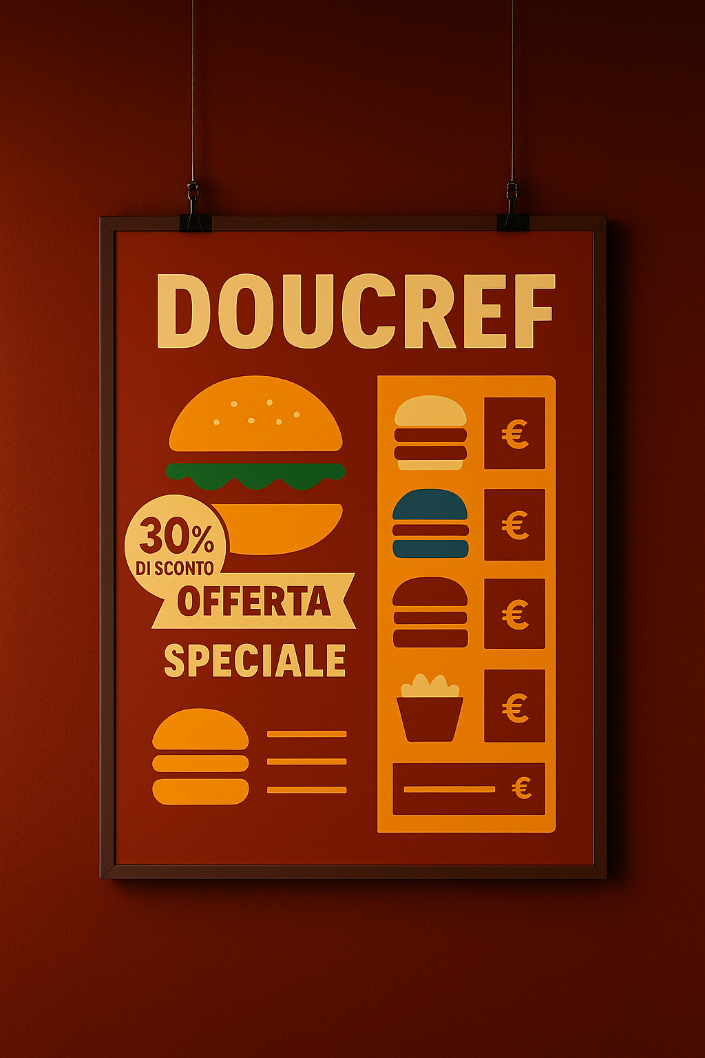 In Doucref, ogni progetto nasce con uno scopo preciso. Ogni nostro design risolve le esigenze reali delle attività con uno stile pulito, professionale e coerente.